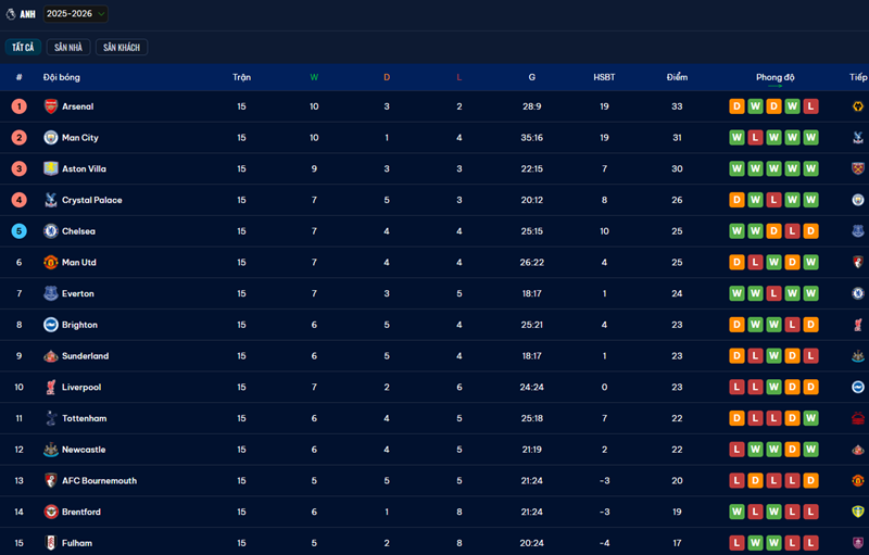 Điểm mạnh khiến bảng xếp hạng bóng đá a n h trên Rakhoi Tivi thực sự trở thành công cụ đọc vị phong độ nằm ở chiều sâu dữ liệu hiển thị. Không chỉ dừng ở điểm số và thứ hạng, Rakhoi trình bày hàng loạt thông tin chiến thuật hóa: