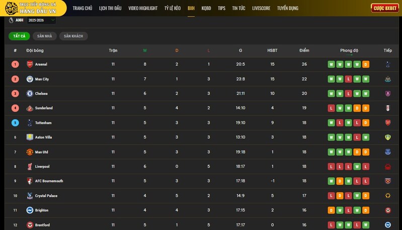 - BXH cập nhật cực nhanh và đầy đủ dữ liệu
