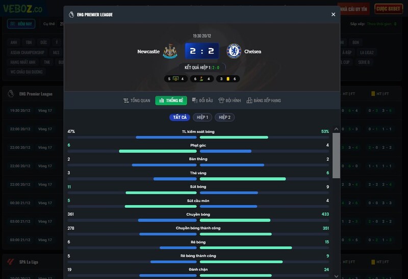 Điều khiến Vebo Live hơn nhiều trang khác là kết quả bóng đá đi kèm nhiều thông tin bổ trợ. Với mỗi trận đấu, anh em có thể biết thêm: